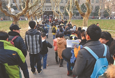 2015年全国硕士研究生招生考试昨落下帷幕,我省十万大军赴37个考点应考,与去年相比今年考研人数减少了75人。图为考生在南京东南大学考点陆续进场。 本报记者 杨频萍/文 余 萍/摄