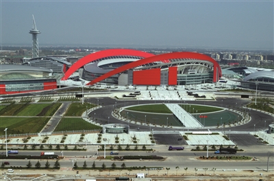 南京奥体中心两道大拱10年来不开裂、不渗漏,状态良好。