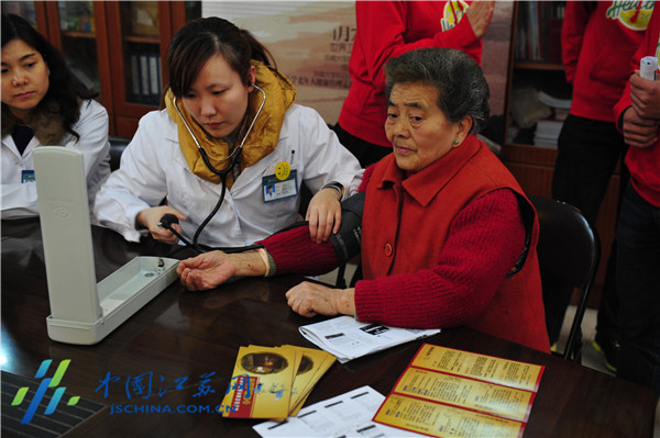 中国江苏网4月7日讯(记者 王逸男 通讯员 吴韵 王婧菲)今天下午,借着“世界卫生日”的契机,来自东南大学的志愿者走进南京市成贤社区,开展了以“关爱老年人健康管理”为主题的系列活动。学生们向老人赠送亲手绘制的“老年人医疗保健手册”,卡通的插图,实用的健康知识,受到社区中老年人的热爱。。在现场,更有医生为社区中老年测血压、血糖,并对其健康生活进行指导。