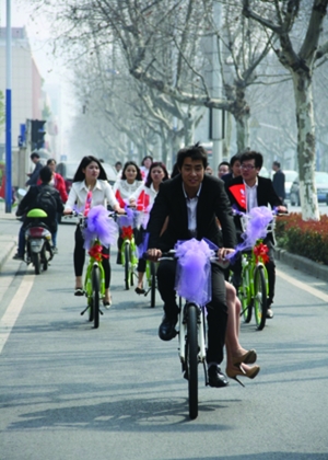 靓眼的公共自行车婚礼