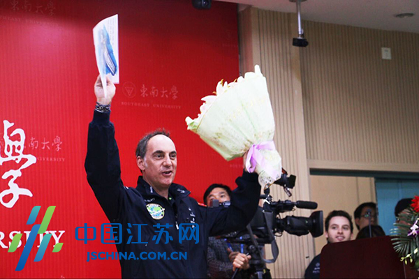 中国江苏网4月29日讯(记者王逸男)今天上午,“阳光动力2号”执行总裁Gregory带领机组人员走进东南大学,与现场学生们分享全球最大太阳能飞机的奥秘。
