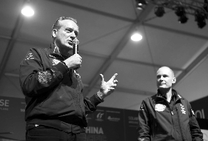 飞行员贝特朗和安德烈与大家现场交流 现代快报记者 邱稚真 摄