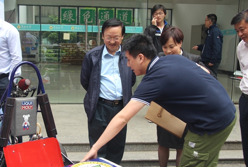 在本次活动当中,易红校长在力魔车队队长带领下参观了由力魔车队成员独立自主研发制造的方程式赛车。参观过程中,校领导就车队人员组成、赛车制造、车队发展近况等问题与车队队长及成员进行了深入的交流,期间校领导尤为关心重视这支车队的建设发展及过程中遇到的困难,并表示了对大学生创新精神的全力支持,并对力魔车队取得的成果表达了充分的肯定和赞赏,也希望通过力魔车队这支独立自主运营、研发和制造赛车的学生团体能够将东南大学的光荣传统在校内外不断发扬,为校争光。
