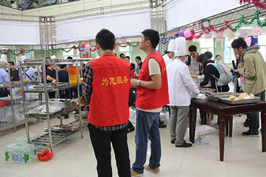 活动现场还安排了学生服务志愿者维持现场秩序以及为参加美食节的学生解决各种问题