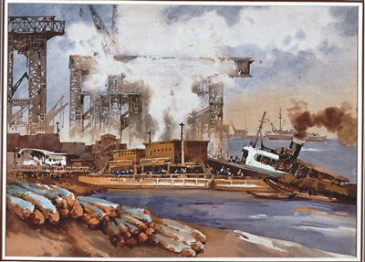 李剑晨画作《建设中的南京长江大桥》