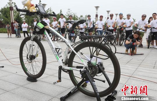 自行车轮装载团队自主研发的led灯板,转动时成了一块炫丽的led电子屏。 泱波 摄
