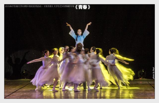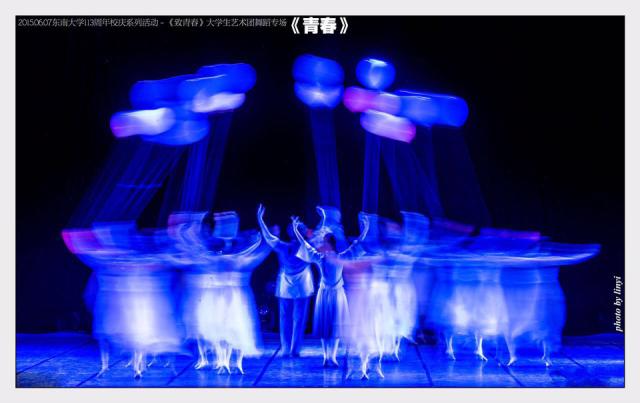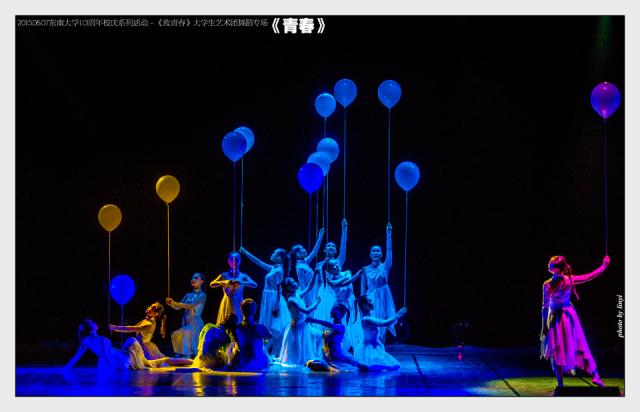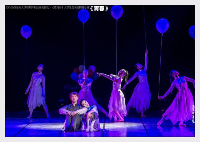 东南大学大学生艺术团舞蹈团是东南大学高水平学生艺术团体之一,由来自东南大学各院系近10名舞蹈特长生与30余名舞蹈爱好者组成。图为开场舞蹈《青•春》。(摄/林毅)