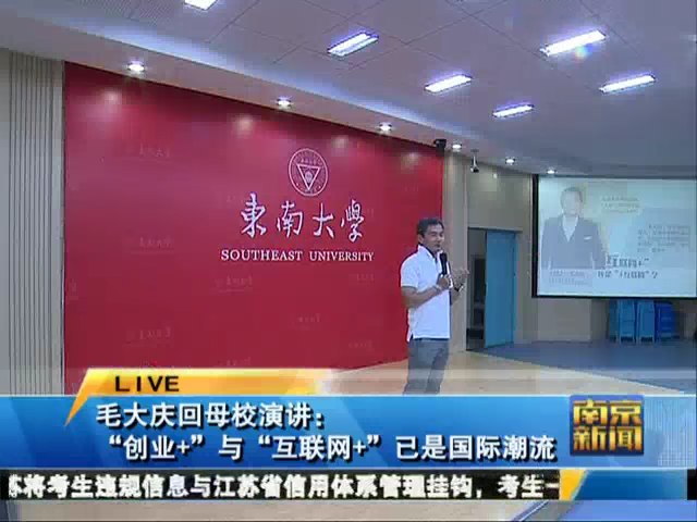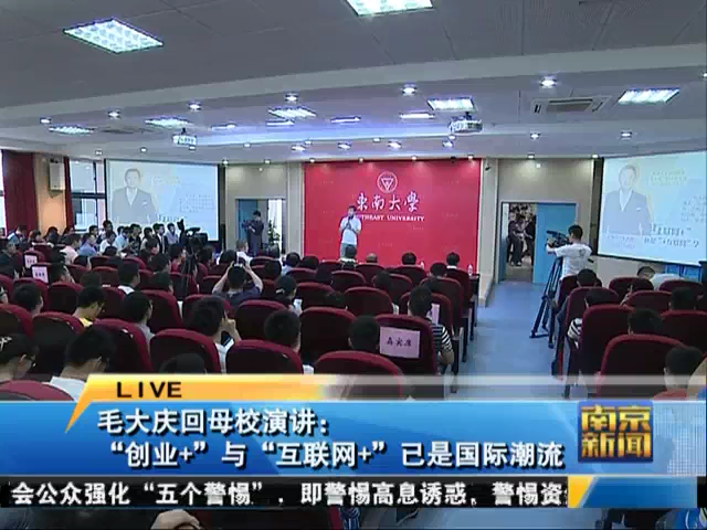 【南京电视台:南京新闻】毛大庆回母校演讲:“创业+”与“互联网+”已是国际潮流