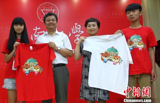 营员们向东南大学赠送T恤衫。 泱波 摄