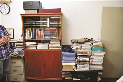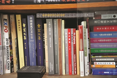 钟老的书房是名副其实的“书”房,积了满满一屋子书,我们五六个人进来后也就没了空余的地方。书桌前后各摆放着一口大书柜,里面主要收藏建筑类的书,单《世界建筑史》就占了整整一层。