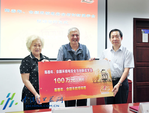 中国江苏网9月28日讯(记者 王逸男 通讯员 许启彬) 为促进东南大学核电专业的发展,今天,该校能源与环境学院年近八旬的陈善年、佘颖禾教授夫妇向学校慷慨捐赠100万人民币,在东南大学教育基金会设立“陈善年、佘颖禾核电安全与创新奖学金”。主要用于奖励东南大学能源与环境学院核电方向全日制在校本科生、研究生,每年颁发一次,由能源与环境学院确定奖助名额及金额,只要符合成绩优良、社会责任感强等相关条件的学生均可申请。