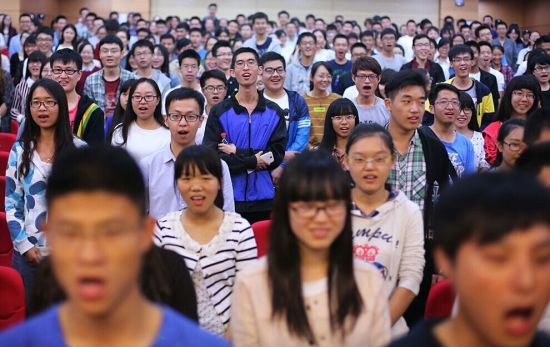 大学生们在龚琳娜的带领下一同“忐忑”。 泱波 摄