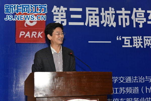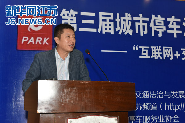 南京市停车设施管理中心主任刘国强做主题演讲。