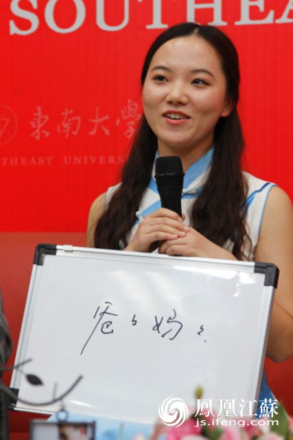 来自人文学院的胡若冰,曾担任青奥会礼仪志愿者,并获优秀志愿者称号。面容姣好的她是同学们口中的“青奥女神”。胡若冰讲到,当初在面试时,虽然身高只有 165CM的自己达不到168CM的底线要求,但因在遴选过程中一直保持站姿和微笑,最后破格入选。“入选后半年里1000个小时的训练,是我永远难忘的 经历。青奥教会我坚持”,胡若冰说。