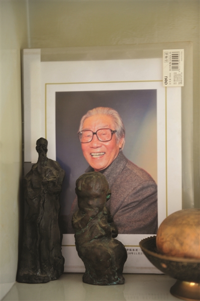 泥塑与他的照片相映成趣。