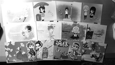 “我平时做学生工作这一块,社会主义核心价值观对现在的大学生是一个很重要的思想导向,大家也很乐于接受,但是在记忆的时候不免觉得有点抽象容易遗漏,所以我们一直想用一种比较轻松活泼的方式让大家记住包括理解其中的含义。”东南大学电子科学与工程学院的老师邱峰告诉记者,在相继排除了歌曲、诗歌等一系列表现形式后,他们最终确定了漫画,“正好我们学院里有三个小姑娘绘画很不错,人气也一直很高。”