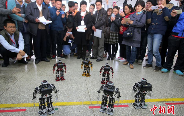 11月15日,第五届中国教育机器人大赛在南京东南大学九龙湖校区开赛,来自南京大学、东南大学、湖南大学等多所国内一流名校的200多支队伍、600多名经过全国各分赛区选拨的队员携带各式机器人前来,参加机器人舞蹈等项目。 泱波 摄