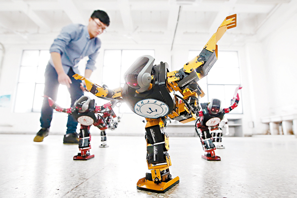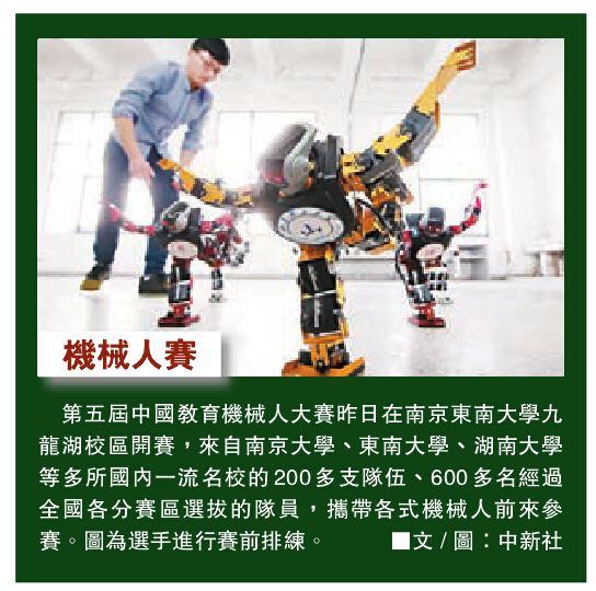 第五届中国教育机械人大赛昨日在南京东南大学九龙湖校区开赛,来自南京大学、东南大学、湖南大学等多所国内一流名校的200多支队伍、600多名经过全国分赛区选拔的队员,携带各式机械人前来参赛。图为选手进行赛前排练。