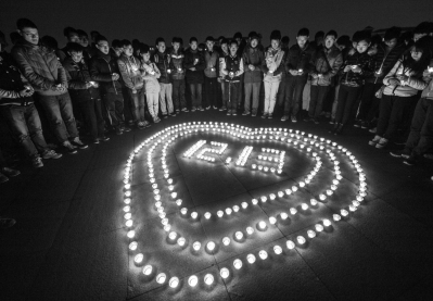 图:昨晚,东南大学学生在九龙湖校区图书馆前广场举行烛光祭活动。