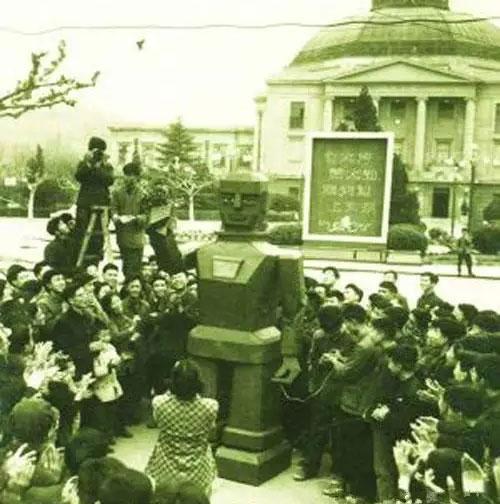 1960年南京工学院校研制的机器人在大礼堂门前展出,资料图片