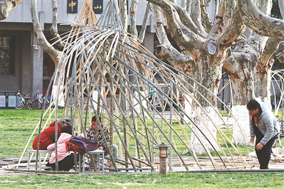 24日,33件用竹子搭建而成的创意建筑亮相南京东南大学建造节,建筑学院大一选了这门课的同学分成若干小组,每组完成两件竹构作品,用最少的材料实现最大的强度。 新华报业视觉中心记者 刘 莉摄