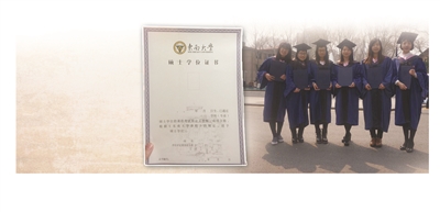 从今年起,高校学位证不再由教育部统一印发,改为高校自主设计。我省大部分高校“个性定制版”学位证初稿已经完成。在东大研究生毕业典礼上,最新版东大学位证“现出真容”。东南大学的新版学位证由以往的A4横版变为A4竖版,包括封套和证书两个部分。翻开硕士研究生学位证,扑面而来的是浓浓的“东大味”。左手页是一枚淡淡的东大藏书票,底图是位于东大四牌楼校区内已1400岁高龄的“六朝松”。右手页的顶端是东大标志性的logo,底图是大礼堂手绘图,这幅作品出自建筑大师齐康院士之手。