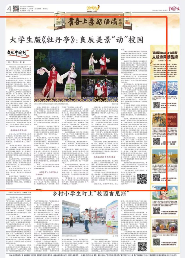 东南大学艺术学院硕士生神绮悦作为青春版《牡丹亭》的忠实粉丝,在欣赏了校园版的演绎后感叹:“演员们的精彩表演彰显着对传统艺术的敬畏与热忱。他们用青春的活力为古老昆曲注入新鲜血液,以当下视角重新解读经典,让传统文化在当代绽放独特魅力。”