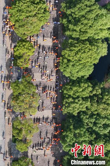 图为师生、校友及社会跑友奔跑在校园内。(无人机照片)中新社记者 泱波 摄