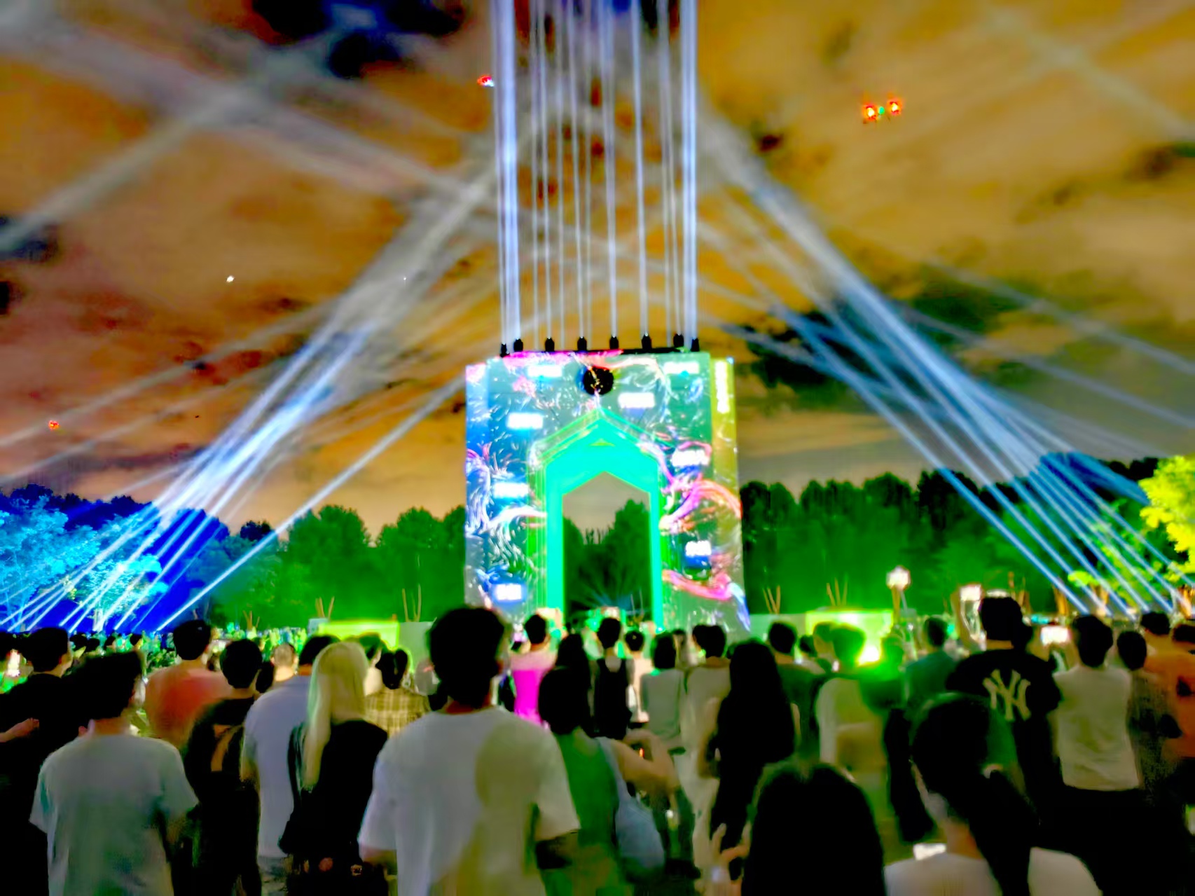当夜幕降临,至善亭化身星光交织的液态建筑,四面立体投影首次亮相,通过粒子瀑布、AI实时渲染等技术,呈现高铁智轨、探月车、三峡大坝等象征东大科研成就的恢弘场景。校史名人的光影与毕业生们举起的手环光亮交相辉映,当同学们惊喜看到自己的名字在浩渺星云中如烟花盛放,欢呼不断,纷纷拿起手机拍照合影,将瞬间定格成永恒。