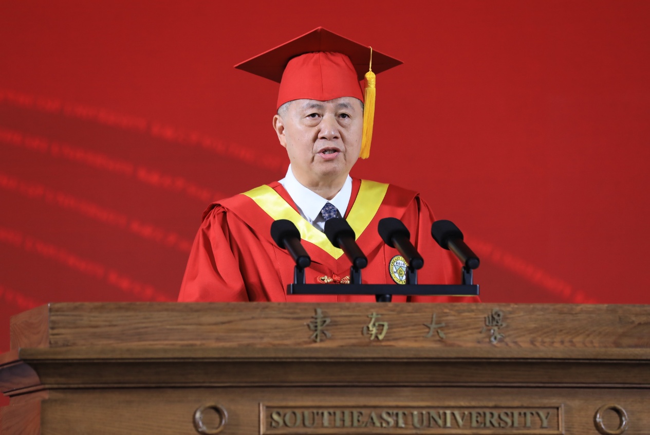 交汇点讯 “东大人的‘至善’,是永不停息的超越。”6月19日上午,东南大学2025年本科生毕业典礼暨学位授予仪式在九龙湖校区体育馆举行。典礼上,中国工程院院士、东南大学校长孙友宏以《至善绘青春 砥砺启新程》为题寄语2025届本科毕业生。他回顾了同学们在东大拔节生长、激扬青春、见证时代跃迁的求学奋斗历程,勉励同学们牢记嘱托,不负韶华,为强国建设、民族复兴伟业贡献力量。