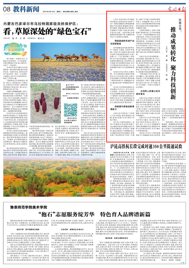 6月初,依托东南大学共建的南京紫金山实验室发布全球首个6G广域低空覆盖的无蜂窝通智感融合外场试验网,赋能低空经济、数字能源、智能制造等应用场景,有望催生千亿级产业链,助力南京打造“6G之城”。这是东南大学勇挑硬核科技创新大梁,支撑服务新质生产力发展的生动缩影。