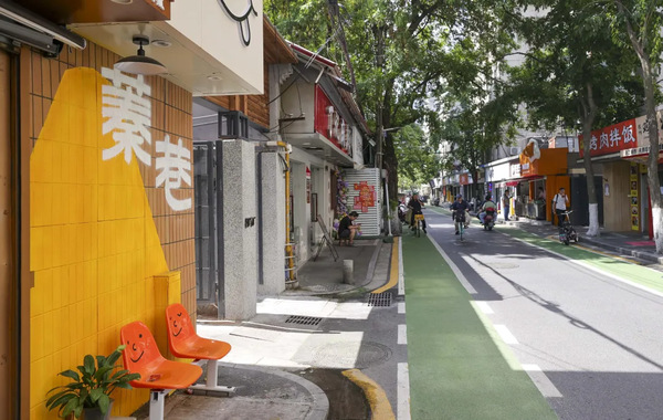 蓁巷被戏称为东大学子的“第二食堂”,整条特色街区包含蓁巷与将军巷,南北串起四牌楼与珠江路。虽然全长仅450米,沿线却分布着80多家各类商铺。“这条巷子吃的很多,但过去的环境跟现在不能比。”王同学说,改造前,街巷入口摆放着垃圾箱和居民的垃圾桶,环境不好。沿街许多门头店招破败,车辆交织人车混杂,与大学门前气质不匹配。走访中,多位老年居民则反映,过去出门买菜、散步,连个歇脚的地方都没有。