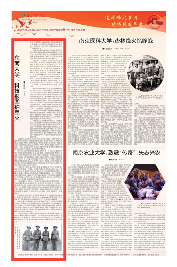 1937年“七七事变”后,中国进入全民族抗战阶段。随着日本侵略者的入侵,南京形势危急,国立中央大学毅然决定西迁。出于对战局的预判,时任校长罗家伦早在1935年即开始筹划迁校,派人赴华中、西南多地考察,最终选址重庆。在校方周密组织及各方援助下,西迁顺利完成。“共转移师生1400余人、图书仪器1900余箱,农学院的牲畜也悉数安全抵达”,东南大学校史馆教师郭淑文介绍说,“当时全国高校纷纷内迁,我校西迁以‘筹划最周密、速度最快、保存最完整’,成为抗战时期高校迁徙史上的典范。这不仅存续了文化命脉,也为战后国家重建积蓄了重要力量。”