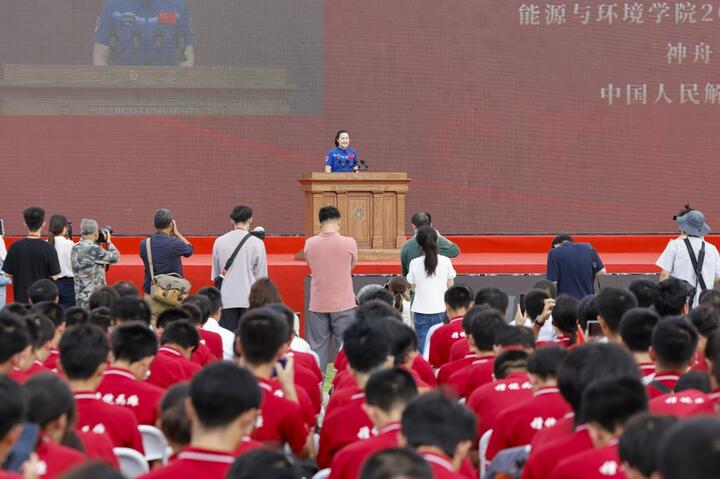 交汇点讯 9月19日,东南大学举办2025年新生开学典礼。典礼上,东南大学校友、中国首位女性航天飞行工程师、神舟十九号载人飞行任务航天员王浩泽作为神秘嘉宾出场,将现场气氛推向高潮!