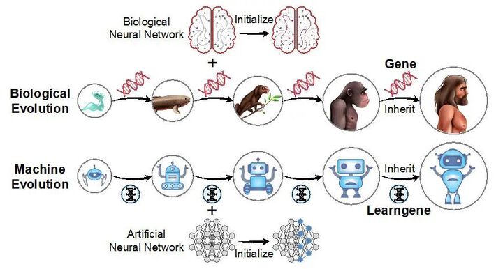 人工智能的发展一直深受生物智能的启发。生物体通过基因在代际间传递知识,赋予后代先天能力,而现有的人工智能却始终缺少类似的机制。人类和动物的大脑在出生时已被进化了35亿年的基因“蓝图”所初始化,而机器往往只能依赖海量数据,从零开始进行低效的学习。