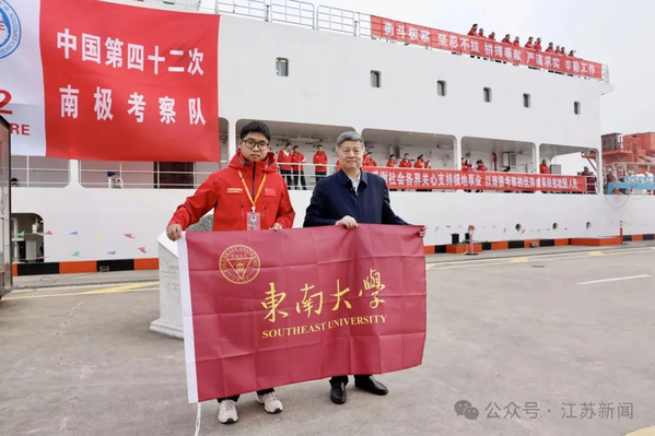 11月1日上午,在位于上海的中国极地考察国内基地码头,“雪龙”号和“雪龙2”号科考船的汽笛声划破长空。东南大学自动化学院2025级博士生许银辉与送行的师长告别后,稳步踏上舷梯,登上“雪龙2”号。随着船身缓缓驶离码头,许银辉正式开启中国第42次南极科考征程。