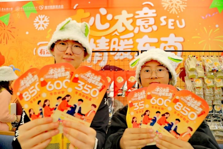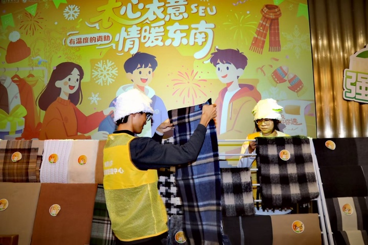 交汇点讯 “自选模式让我感受到了被尊重和理解,谢谢学校的细心。”“如果之后可以有暖宝宝就更好了!”……大雪时节,东南大学四牌楼校区的春晖堂内却暖意流动。12月12日,延续四十余载的暖心传统——2025年东南大学“有温度的资助”暖冬御寒专项补助活动再度点亮校园,为462名家庭经济困难新生送上御寒冬衣,让这个冬天“衣”然温暖。
