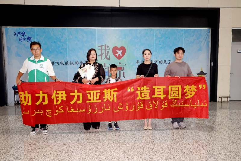 7月24日下午,南京禄口国际机场的到达口,一条“助力伊力亚斯‘造耳圆梦’”的横幅格外醒目。中大医院烧伤整形科张倩婷护士长等医护代表手捧鲜花,早早等候着这对跨越四千公里而来的母子。
