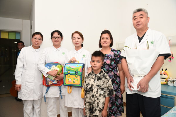 烧伤整形科医护将精心准备的礼物送给伊力亚斯