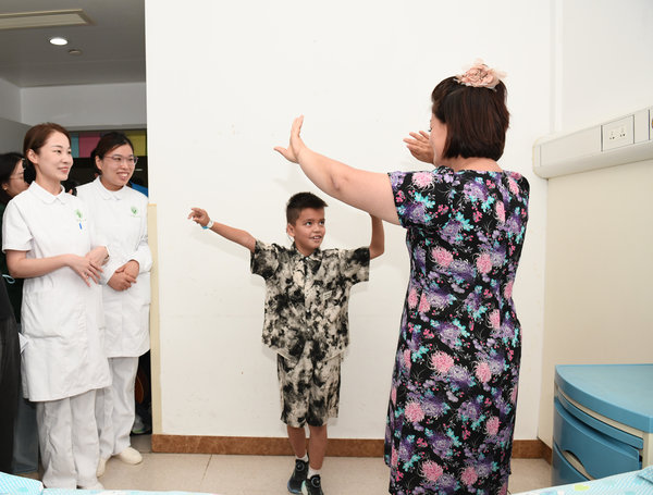 8月11日上午,在南京市东南大学附属中大医院烧伤整形科的病房里,伴随着新疆特色悠扬的音乐,新疆小耳症男孩伊力亚斯和他妈妈古丽,与中大医院烧伤整形科医护一起跳起新疆舞,庆祝伊力亚斯成功完成小耳再造一期手术即将出院。据悉,伊力亚斯是中大医院联合江苏省瑞华慈善基金等爱心组织开展的“爱耳公益新疆行”首位受益者,他将于8月12日出院返回新疆,带着“新耳朵”开启新生活。