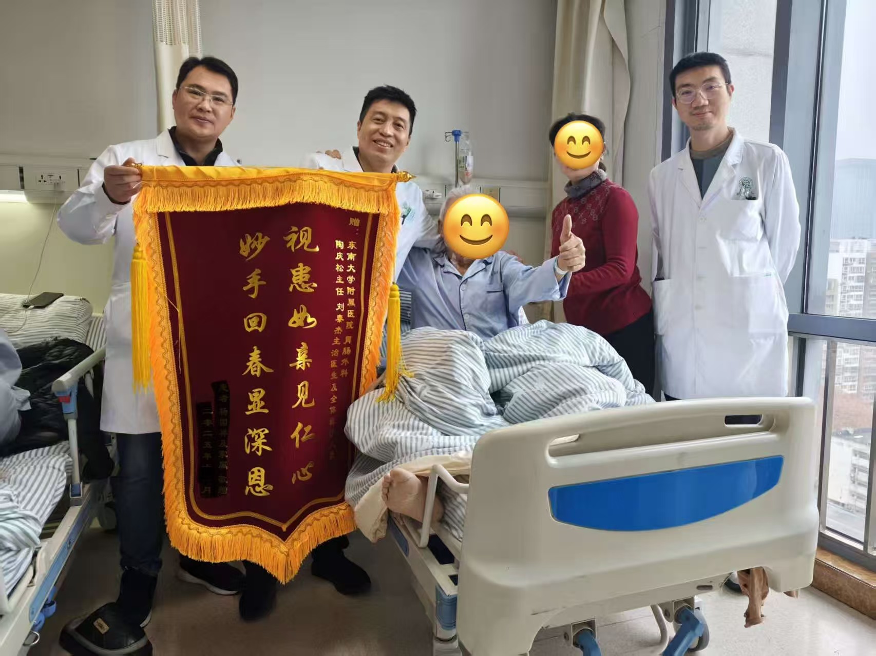 患者出院前,向陶庆松主任(左二)及团队献上锦旗