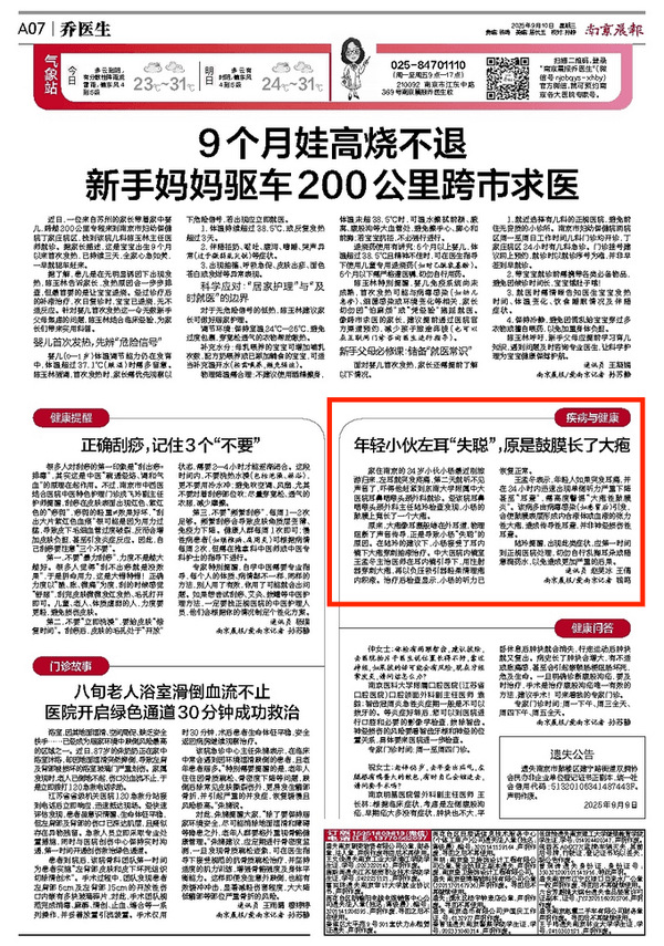 陆玲提醒,出现此类症状,应第一时间到正规医院处理,切勿自行乱掏耳朵或随意滴药水,以免造成更加严重的后果。