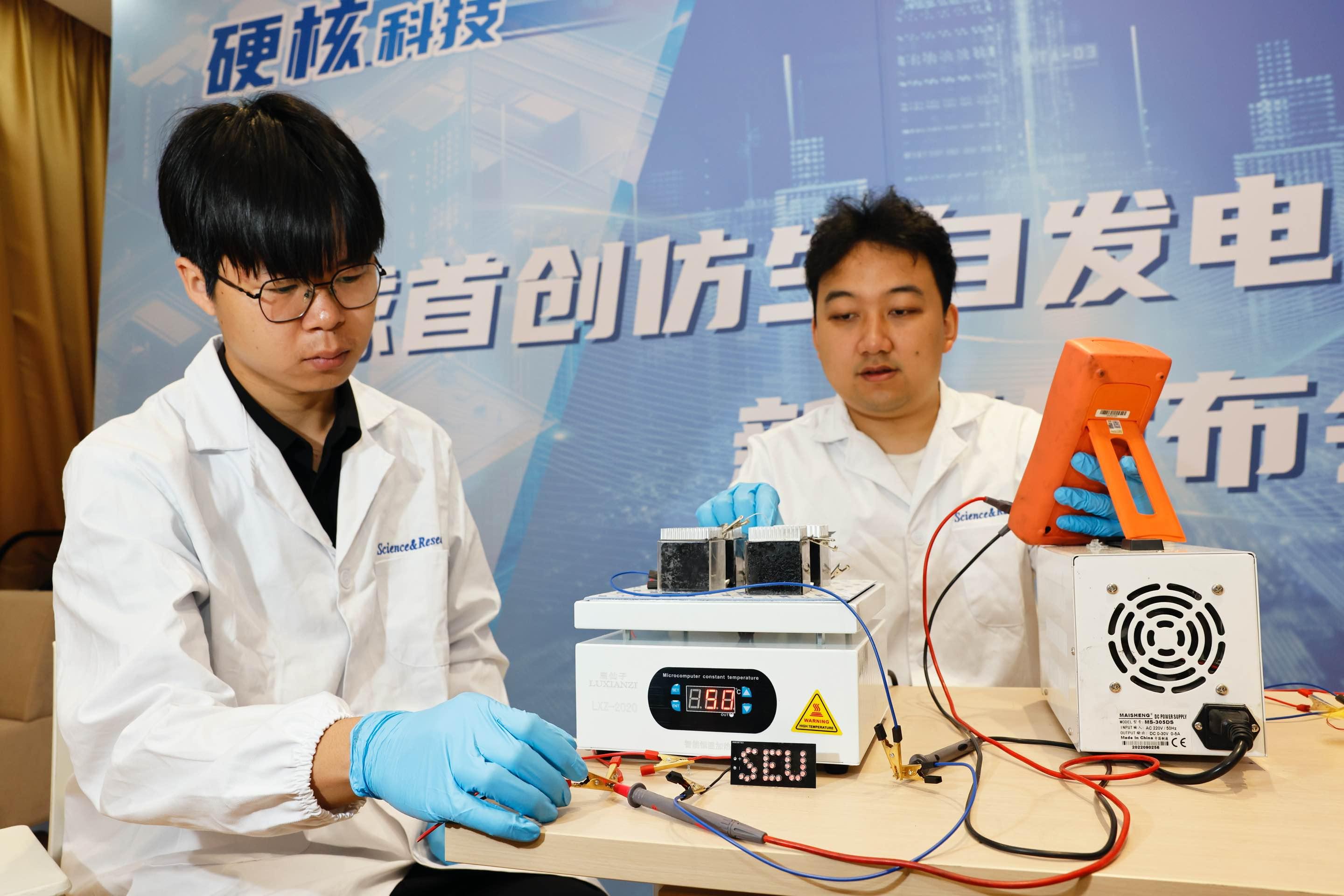 东大科研团队在展示仿生自发电-储能混凝土。杭添 摄