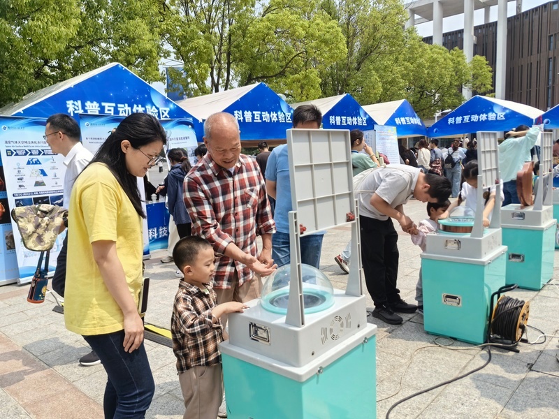 在科普互动体验区,“无皮鼓”“磁力传动摆”“翻转的镜像”“旋转的银蛋”等互动装置前,很多孩子好奇地一试身手;科学体重管理、指纹探秘、长江江豚保护、地表水环境保护等展台,不时挤满了热情的观众。