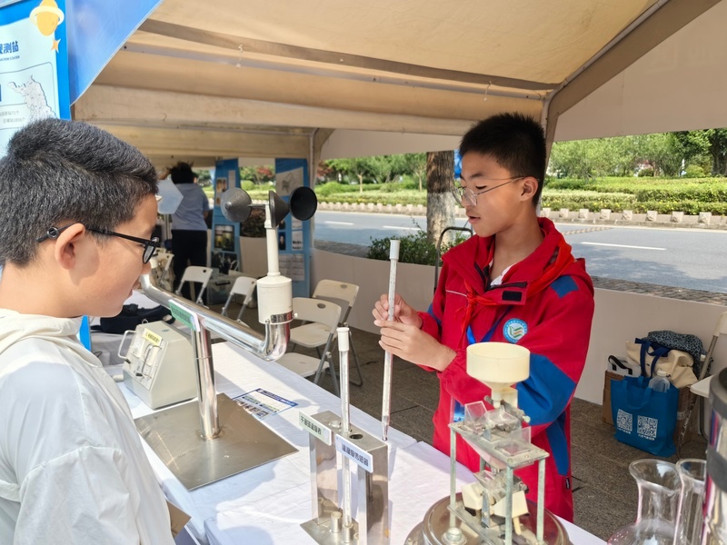 记者看到,介绍气象观测知识的展台,主讲人竟然是一名小学生。原来,这是南京市六合区城西学校“晨曦”气象社团带来的科普服务,“小老师”是六年级学生胡睿博。一旁的张晓洁老师告诉记者,学校2022年在六合区气象局指导下成立了气象社团,2024年被中国气象学会授予“气象教育特色学校”称号。社团有约30个学生,常态化学习气象知识,还延伸开展气象数据收集、气象科普画等活动。