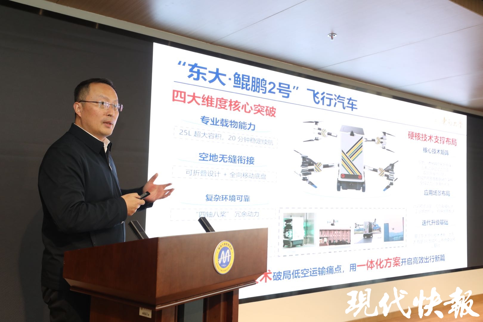 2025年1月1日,东南大学发布“东大·鲲鹏1号”飞行汽车,一年后,“东大·鲲鹏2号”重磅亮相。升级后的飞行汽车更轻便小巧,机臂可折叠,可更自由、快速地转换形态,更灵活、高效地完成各类既定任务。