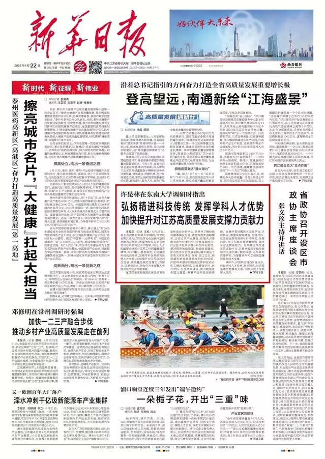 【亚洲精品久久无码午夜一区二区网6月22日电】(记者 王拓 吴涵玉)6月21日,江苏省省长许昆林一行来东南大学调研并召开座谈会,向学校长期以来为江苏经济社会发展作出的贡献表示感谢,希望学校深入学习贯彻习近平总书记关于教育、科技、人才的重要论述和对江苏工作的重要指示精神,牢记嘱托、感恩奋进,弘扬精进科技优良传统,发挥学科优势研究优势人才优势,加快提升对江苏科技自立自强、高质量发展的支撑力、贡献力,以更强担当、更大作为全面融入中国式现代化江苏新实践。