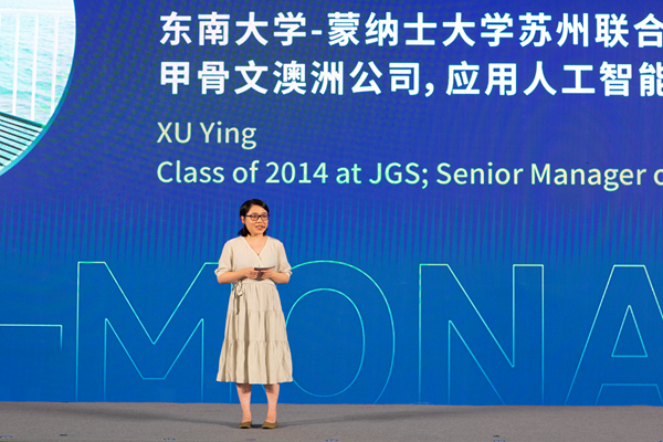东蒙联合研究生院第一届毕业生徐莹在发言中表示,回顾过去10年的成长旅途,每步脚印都印刻着东南大学与蒙纳士大学的全心栽培。这里的滋养不止于学识江河与研究天地的教学开解,更在于这里展现的广阔舞台与国际视野。