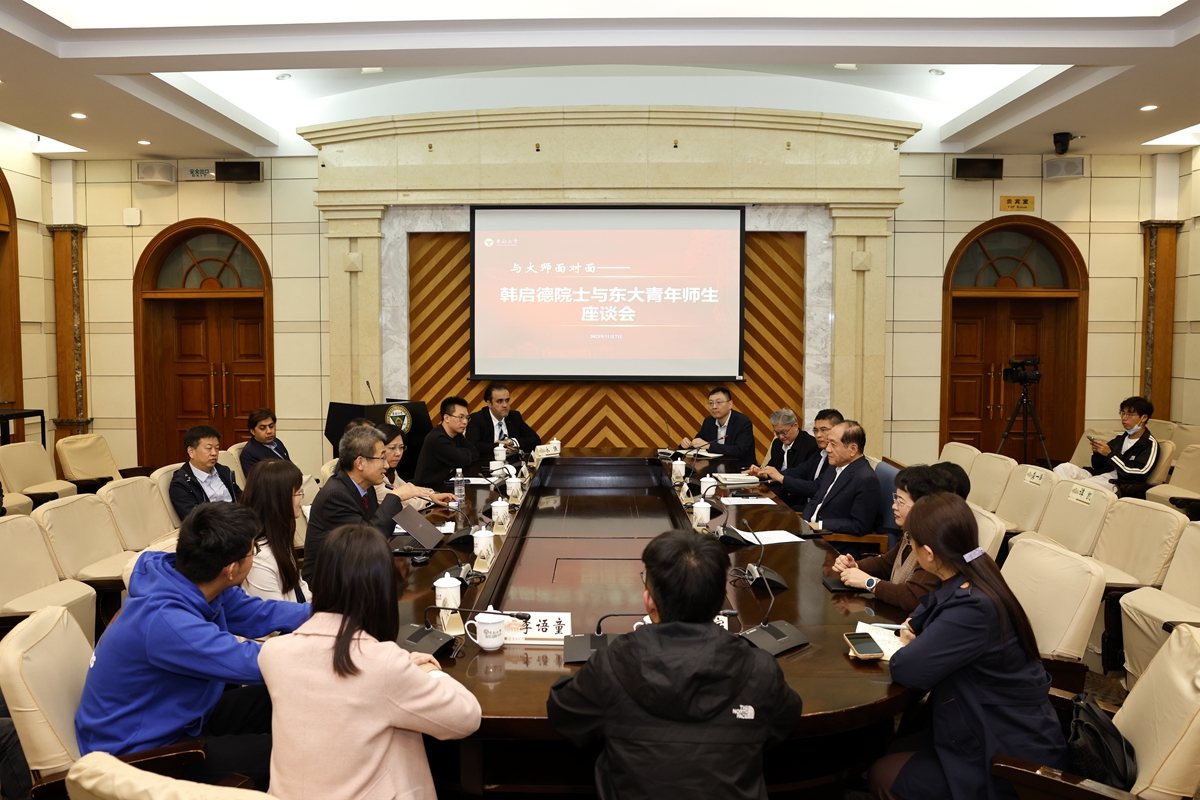 随后,在四牌楼校区礼东二楼报告厅举行韩启德来访东南大学座谈交流会。座谈会上,黄如对韩启德莅临我校讲学指导以及在学校百廿校庆上的致辞表示感谢,并介绍了学校科研创新、学科建设等方面情况,着重介绍了学校大医科建设的未来规划。韩启德充分肯定了东南大学所取得的成果,并围绕医学教育改革和医生科学家培养等问题与在场师生深入交流。座谈会由邱海波主持。