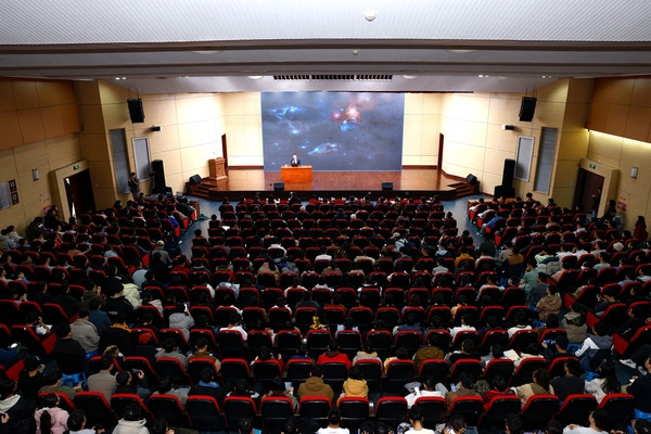 签约仪式后,施一公受邀来到润良报告厅为师生作了题为《生命科学与人类发展》的“六朝松”大师讲堂讲座。他以生命起源和宇宙演变的宏大视角作为前言,化大为小到结构生物学领域的技术和应用,展现了生命科学领域的博大精深。讲座结束后,金石向施一公赠送了南华彝绣《六朝松》,表达师生们的崇高敬意。